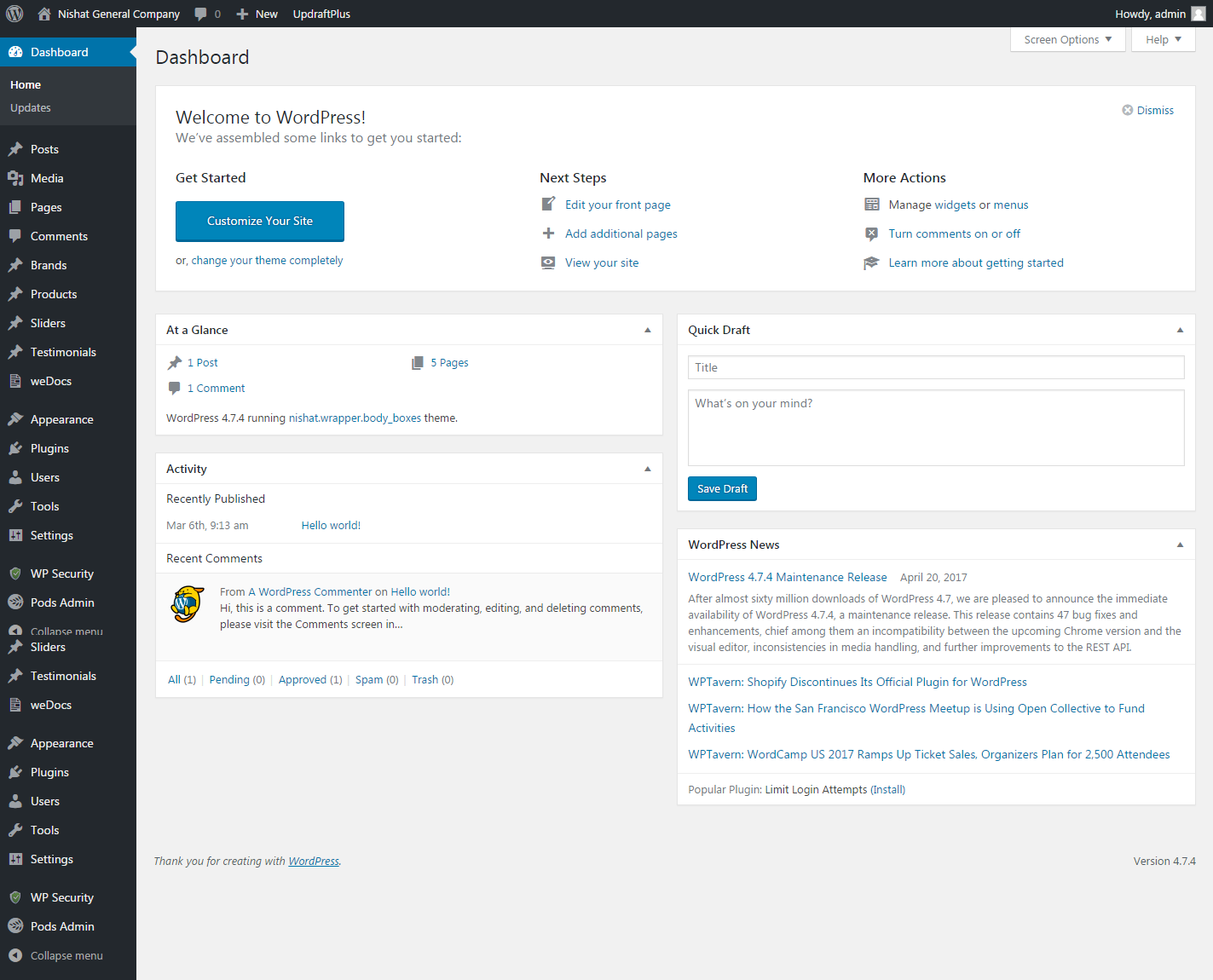 Dashboard is the administration section of website.It is the place where all of your site’s admin tasks are performed.