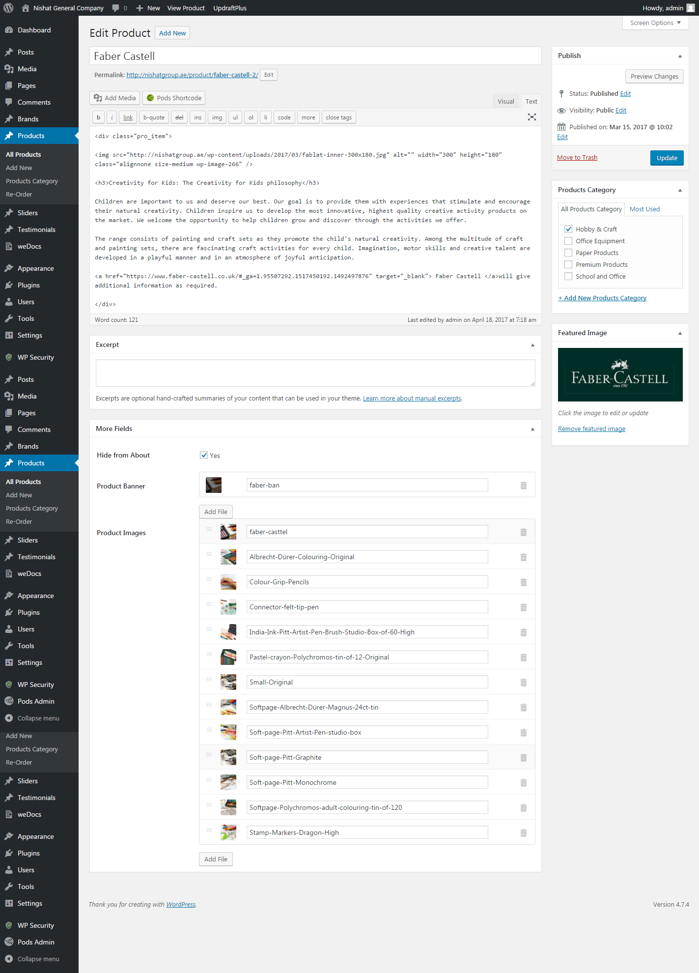 Adding the new product Products -> Add NewThen the top section adding the tittle and content are adding the content section.Product Category section select one category then Featured Image portion adding image.Front End Select Product Menu and select one product product listed and click one image that page contains different images that can be changed from Product -> All Product and edit one product that contains one portion product images changes